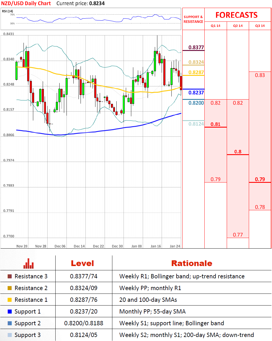 «Мы бы были осторожными с падением неохоты к рискам еще больше, учитывая уровень потерь у товарных валют и валют развивающихся рынков».- BNP Paribas (по материалам Reuters)Перспективы парыХотя NZD/USD уверенно пытается пройти сопротивление на 0.8324/09, в конце валюта сдалась и, в результате, был отброшена обратно к месячной точке разворота. Ранее этот уровень спас новозеландский доллар от падения ниже в нескольких случаях, но в среднесрочной перспективе может стать реальностью, что цена будет тестировать поддержку, которая находится около 200-дневной средней скользящей на 0.8124/05.