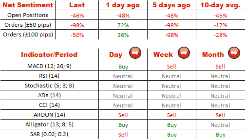 Настроение трейдеровНастроение остается сильно медвежьим по отношению к NZD/USD – 73% участников рынка SWFX ожидают увидеть более низкие уровни торговли в будущем. Что касается отложенных ордеров, то 75% из них расположены на продажу новозеландского доллара, тогда как вчера было значительное преобладание ордеров на покупку, так как их количество составляло 26%.
