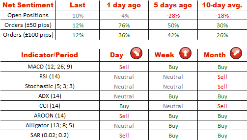 Настроение трейдеров Общий настрой на рынке SWFX остаётся нейтральным по отношению к USD/JPY—55% трейдеров надеется получить выгоду от подъёма курса доллара, а 45% ожидает понижение курса валюты. Распределение между ордерами на покупку и продажу одинаково - 56% к 44% соответственно.