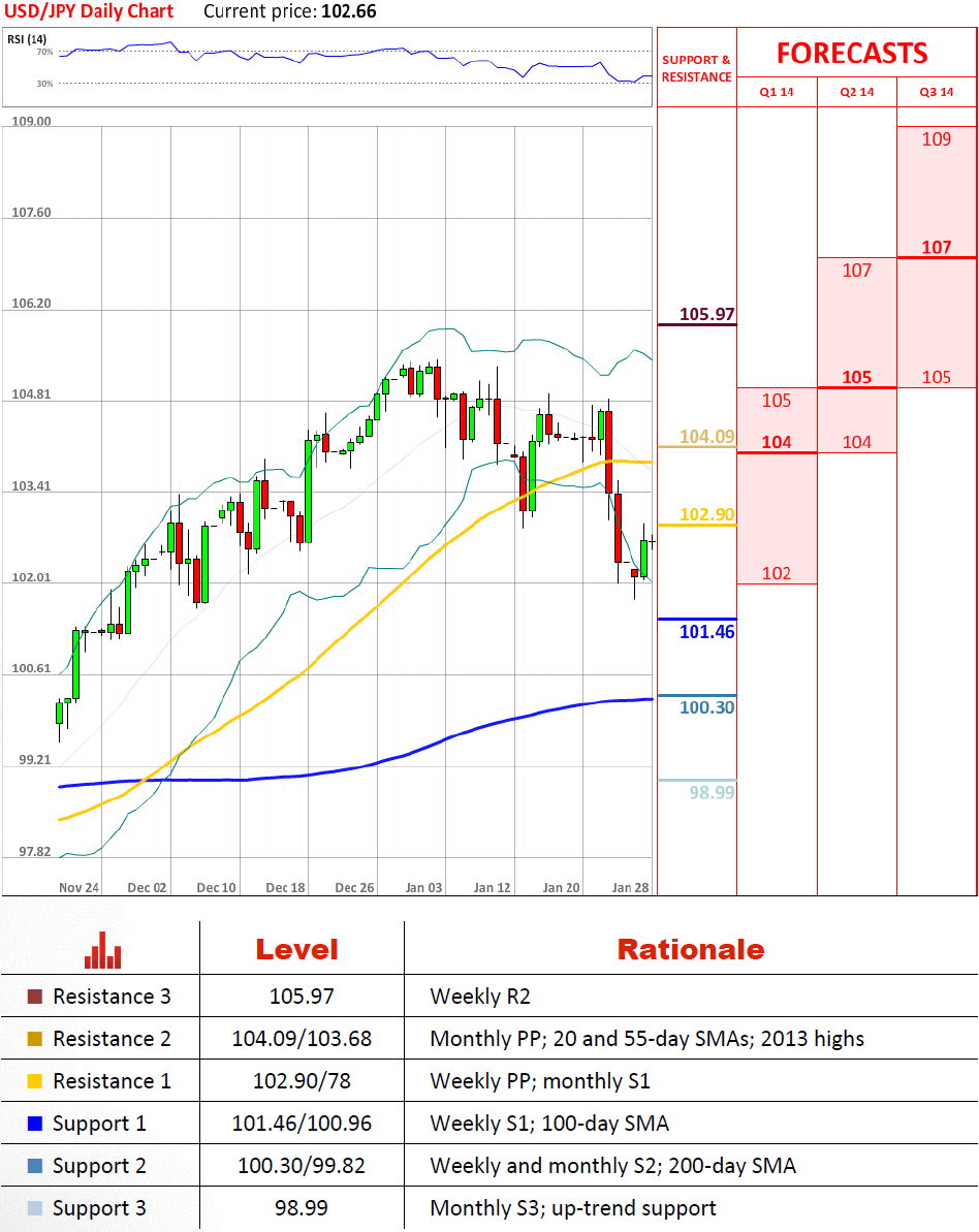 "Новые декабрьские данные по продаже жилья, вместе с беспокойствами по поводу проблем в секторе развивающегося рынка, помогают йене и швейцврскому франку оставаться достаточно сильными против доллара."- Wells Fargo Securities (по материалам Reuters)Перспективы пары