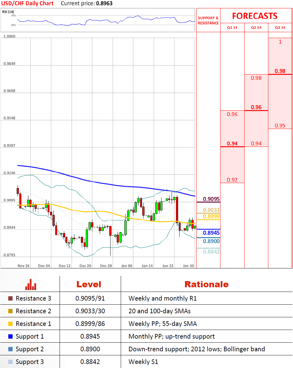 USD/CHF, как и предсказывали некоторые технические индикаторы, оказалась неспособной поддерживать темп и отскочила от 0.8999/86, тем самым отложив достижение 0.9162 (200-дневное SMA). Тем не менее, валютная пара поддерживается сильной восходящей линией поддержки и месячной точкой разворота, и это означает, что восстановление может продолжиться от нынешнего уровня, несмотря на откат.