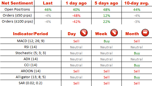 В результате последнего понижения, большее число участников рынка решило приобрести доллар - процент длинных позиций увеличился с 70% до 73%. В то же время, мы можем сделать вывод, что USD/CHF отошла от крепкого уровня сопротивления, так как доля ордеров, выставленных на продажу, сократилась с 71% до 52%.