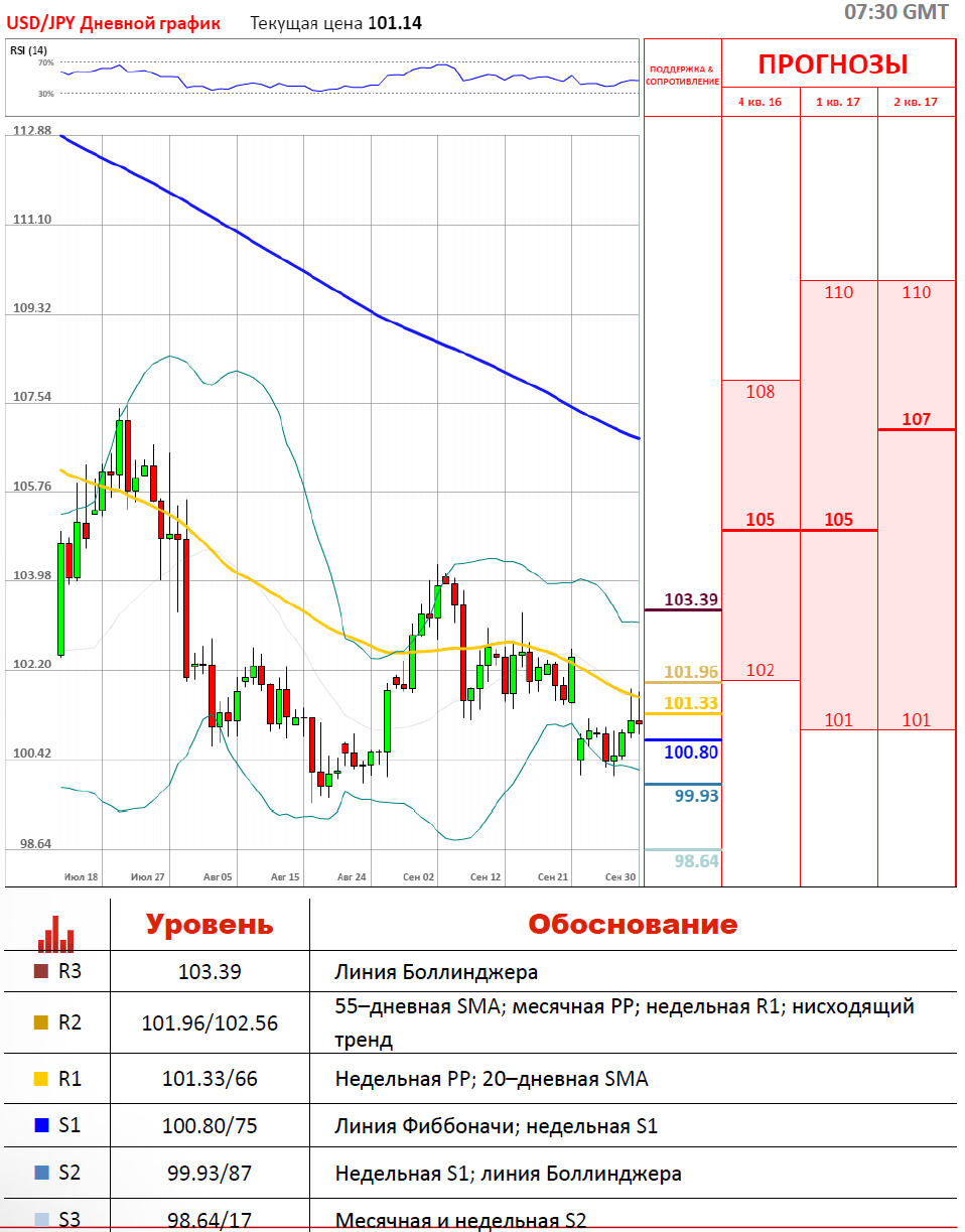 Американская валюта также укреплялась и в данной паре, ввиду снижения спроса на активы убежища, после новостей о договоренности ОПЕК сократить производство нефти до 32,5-33,0 млн в день. Во время своего вчерашнего стремительного роста, пара пробила недельную PP на уровне 101.33, а также 20-дневную SMA. Тем не менее, выход пары из нисходящего канала так и не состоялся. В течении сегодняшней сессии, инструмент следует той же тенденции, а уверенный рост повлечет за собой преодоление границ нисходящего канал, а также достижение месячной PP на отметке 102.16.