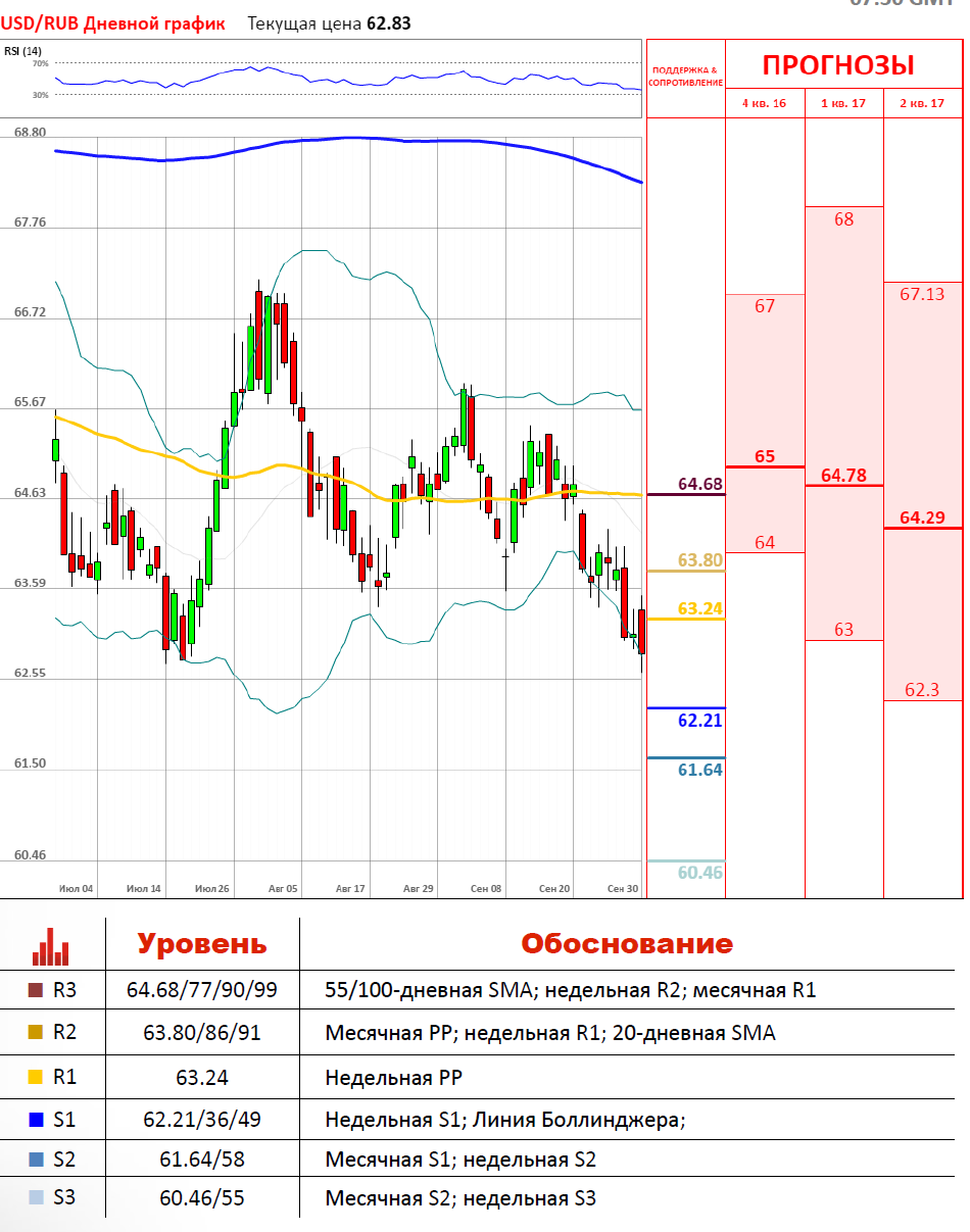 «Понедельник — день коррекций. Сегодня, 3 октября, следим за динамикой цен на нефть. Покупатели собрались штурмовать уровень 50 долларов. Если Brent подорожает до $50,75 за баррель, курс доллар/рубль снизится до 62,45/50 рубля».