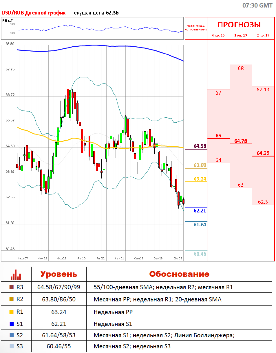 «Идеальный вариант для рублёвых пар — простоять до 7 октября на текущих уровнях. Для дальнейшего укрепления рубля курсу доллара необходимо остаться в ценовом диапазоне 62,14—62,80».