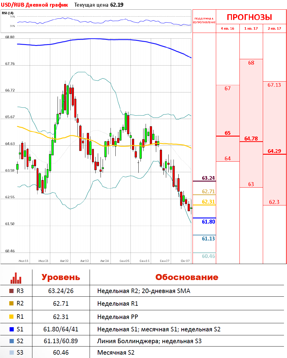 «На понедельник цель по доллару находится на уровне 61,85 рубля. К среде мы должны проверить на прочность отметку 61,65 рубля».