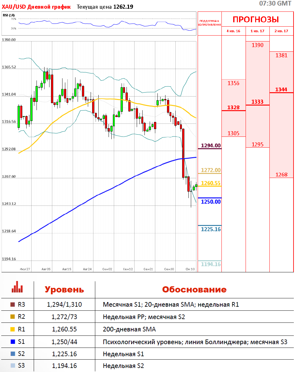 Инвесторы часто обращаются к драгметаллу как к надежному активу в периоды глобальной экономической и политической неопределенности. Таким образом, золото сейчас торгуется около отметки 1,263, где сверху сдерживается недельной РР и месячной S2 на 1,272/73.