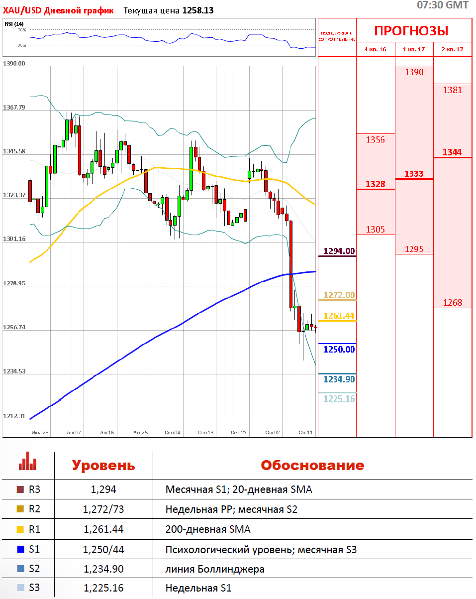 Золоту удалось восстановиться, покинув минимумы 4-х месяцев ввиду слабых данных по занятости в США. Тем не менее, рынок продолжает находиться в ожидании повышения ставки Фед резервом уже в этом году. Инструмент остаётся под границей восходящего канала, а также 200-дневной SMA. Очевидно, что ближайшее сопротивление расположено на уровне 1261, а уровень поддержки– 1250. В случае, если цена окажется под отметкой 1250, это будет означать, что продавцы вернулись на рынок.