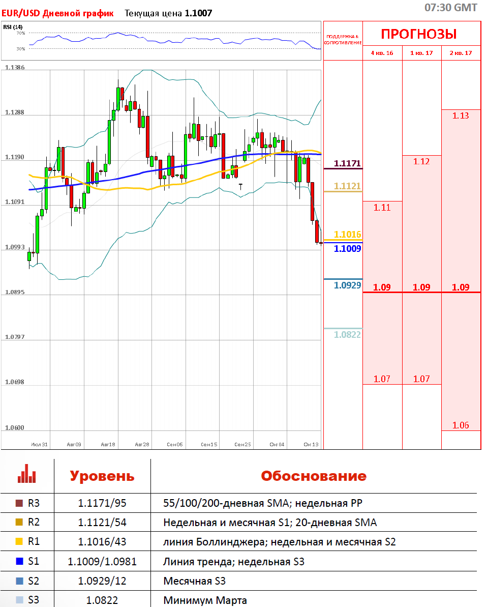 «Первая попытка упасть всерьез, которая состоялась на отыгрывании результатов референдуме по Brexit, не смогла сбросить евро/доллар ниже 1,09, и вот сейчас, по сути, без видимых поводов, и даже вопреки тому, что ФРС не повысил в сентябре ставку, пара евро/доллар пошла вниз».