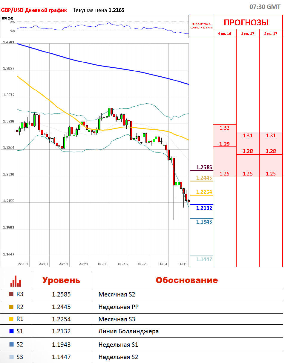 В середине рабочей недели стерлинг рухнул до минимумов 168 лет. Инструмент закрепился на уровне 1.22 и демонстрирует совсем незначительные изменения. Тем не менее, вчера, пара смогла показать небольшой рост и даже пробила месячную S3 на отметке 1.2254, ввиду того, что Тереза Мей дала парламенту право путем голосования решить вопрос о Брекзите. Отрицательный тон продолжает сохраняться, а фунт может быть рекомендован к продаже пока находится под уровнем 1.245. Завершение нисходящего движение может случится только при пробитии отметки 1.25.