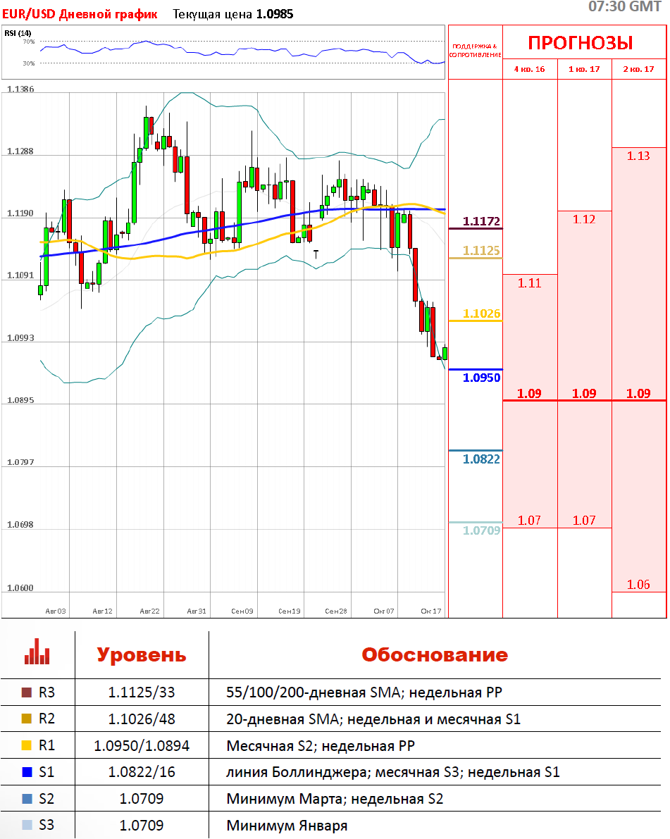 Курс доллара США слабо меняется в понедельник к основным мировым валютам после роста на минувшей неделе. По отношению к евро американский доллар незначительно дешевеет. Таким образом, сейчас валютная пара торгуется в зеленой зоне около отметки 1.0989, где сверху она сдерживается месячной S2, которая расположилась на отметке 1.1025. Инвесторы ждут статданных из США и выступлений руководителей ФРС. Также сегодня состоится выступление заместителя председателя ФРС Стэнли Фишера, от которого инвесторы будут ждать сигналов о возможных сроках повышения ставки в США.
