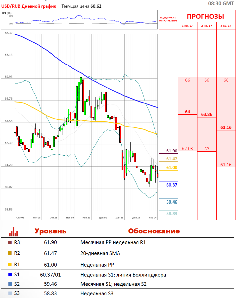 Курс рубля после небольшого повышения в начале торгов сегодня, в среду, перешел к снижению против доллара США на фоне замедления темпов роста стоимости нефти. В динамике торгов валютной пары USD/RUB сегодня наблюдается сильная волатильность. Сейчас пара перешла вновь к снижению, но динамика торгов все же остается разнонаправленной. Пара торгуется около отметки 60.76, и сегодня она вряд ли сумеет преодолеть какие-либо уровни сопротивления ниже вышеупомянутой отметки.