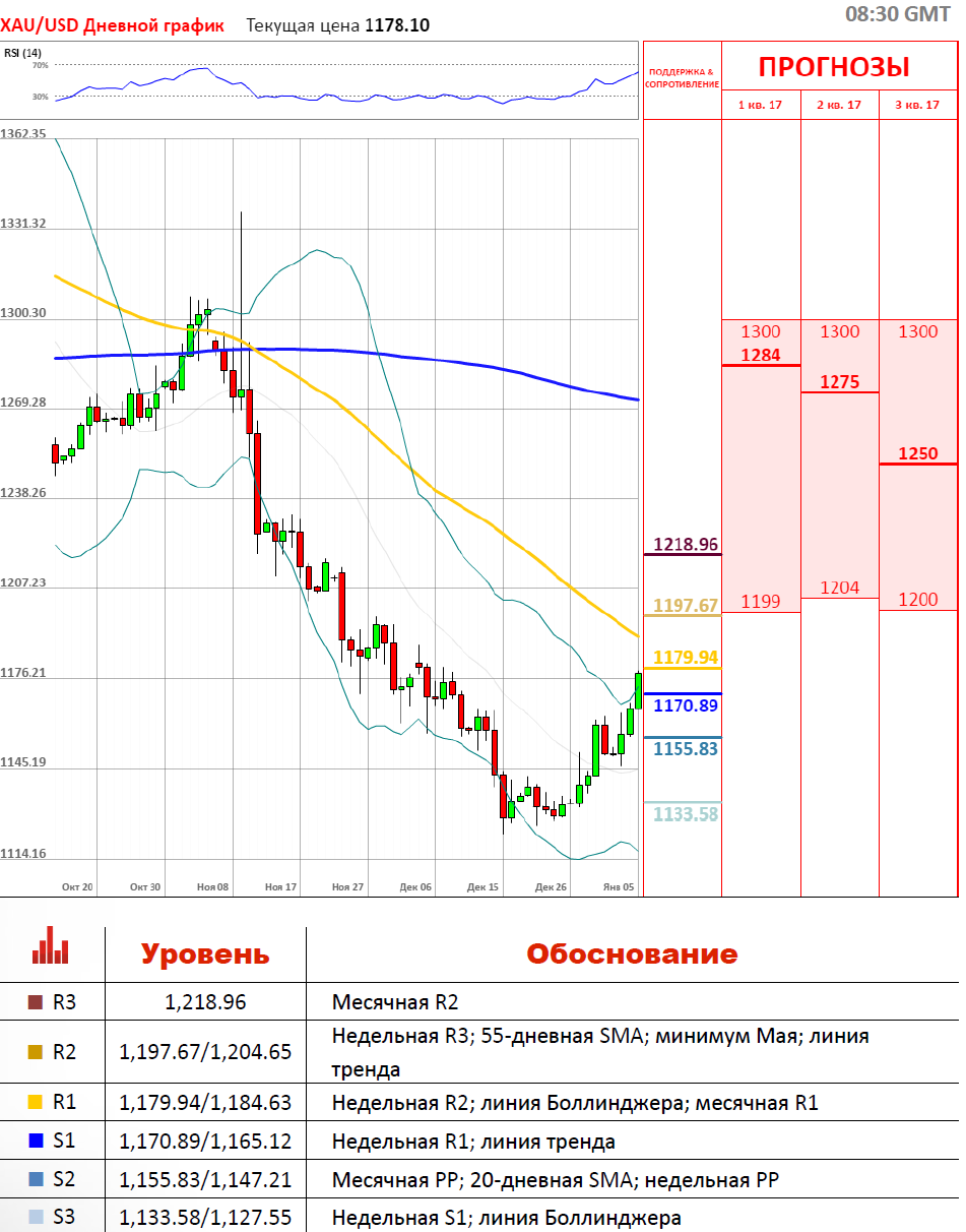 Как показали опубликованные в среду протоколы декабрьского заседания ФРС, появилась значительная неопределенность в отношении того, как политика Трампа повлияет на экономический рост в стране. Это способствовало снижению доллара США по всему спектру валютного рынка. На этом фоне, золото значительно выросло и уже растет третий день подряд. Неясность перспектив влияния экономической политики нового правительства в США на экономику страны, выборы в ряде стран еврозоны приводят к росту спрос на активы-убежища, в том числе золота.