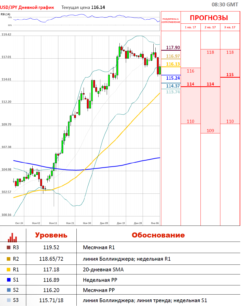 Американский доллар вырос относительно японской иены в пятницу в ходе азиатской торговой сессии, после того как избранный президент США Дональд Трамп раскритиковал крупнейшую японскую автомобильную компанию, вызвав опасения по поводу возможной торговой войны между США и их ведущим азиатским торговым партнером. Таким образом, завершились торги в пользу доллара с укрепление в 164 пункта, и с волатильностью торгов в 212 пунктов. Сегодня пара торгуется в зеленой зоне выше недельной РР на отметке 117.10.