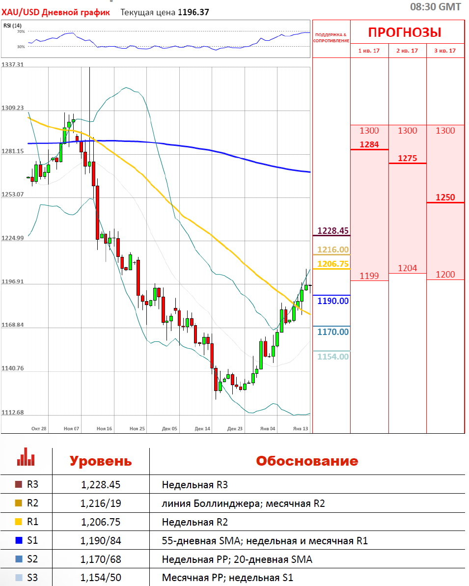 Золото дешевело в ходе торгов утром в пятницу на фоне превысивших ожидания данных статистики по рынку труда США и позитивных комментариях главы Федеральной резервной системы США Джанет Йеллен. Более сильные, чем прогнозировалось, данные статистики поддерживают ожидания ужесточения монетарной политики ФРС, что будет способствовать укреплению доллара. Это, в свою очередь, негативно отразится на стоимости золота, сделав покупку драгметалла дороже для держателей других валют. Сейчас пара торгуется на уровне 1,196.