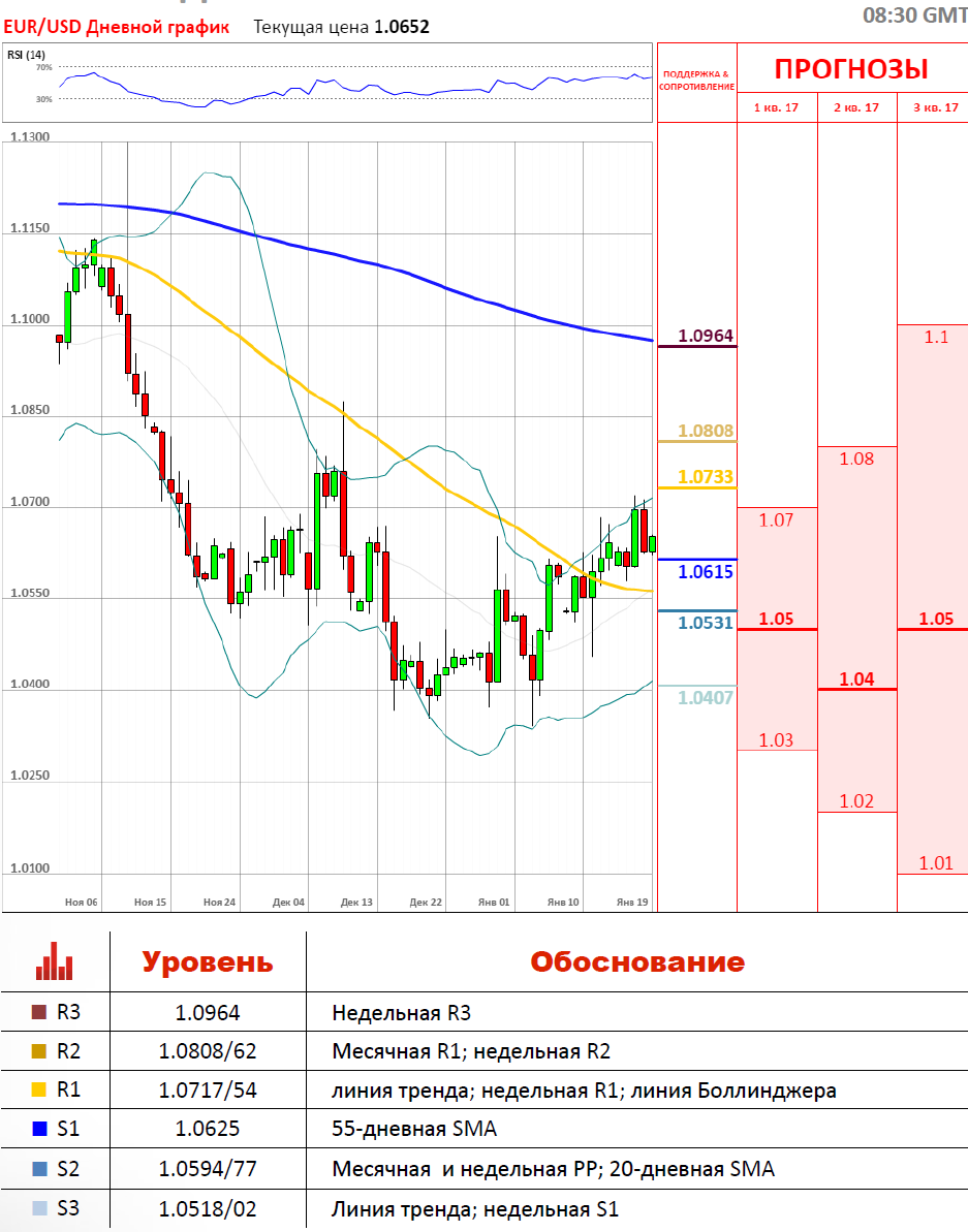 «Йеллен в духе последних достаточно «ястребиных» выступлений членов ФРС может повторить тезисы о достижении целевой занятости, прогрессе в инфляции и повышении ставок два или три раза в 2017 г. Это поддержало бы быков по доллару, обескураженных позицией Трампа».