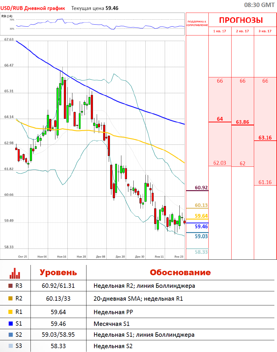 «На предстоящей неделе банкам предстоят крупные рублевые платежи в бюджет. Пик налоговых выплат приходится на 25 января. ЦБ РФ 23 января проведет аукцион РЕПО. 16 января регулятор предложил банкам $2 млрд. Вряд ли он предложит такой объем сегодня. Условия для укрепления рубля остаются благоприятными ».