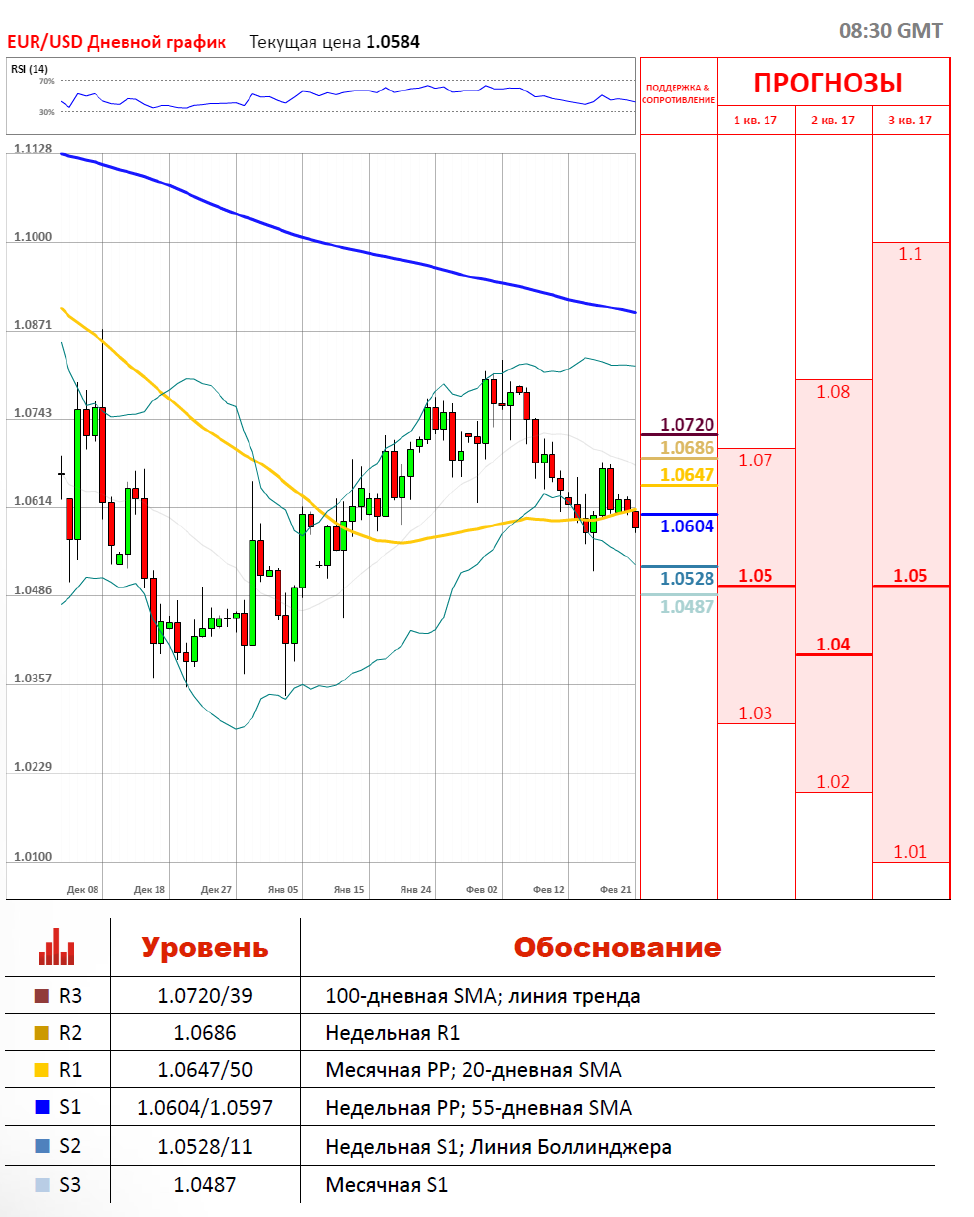 «Пара возобновила снижение после комментария члена ФРС П. Харкера, который сообщил в понедельник, что может проголосовать на повышение ставок уже на мартовском заседании ЦБ. На этом фоне пара упала ниже уровня 1.0600 и может продолжить свое снижение».