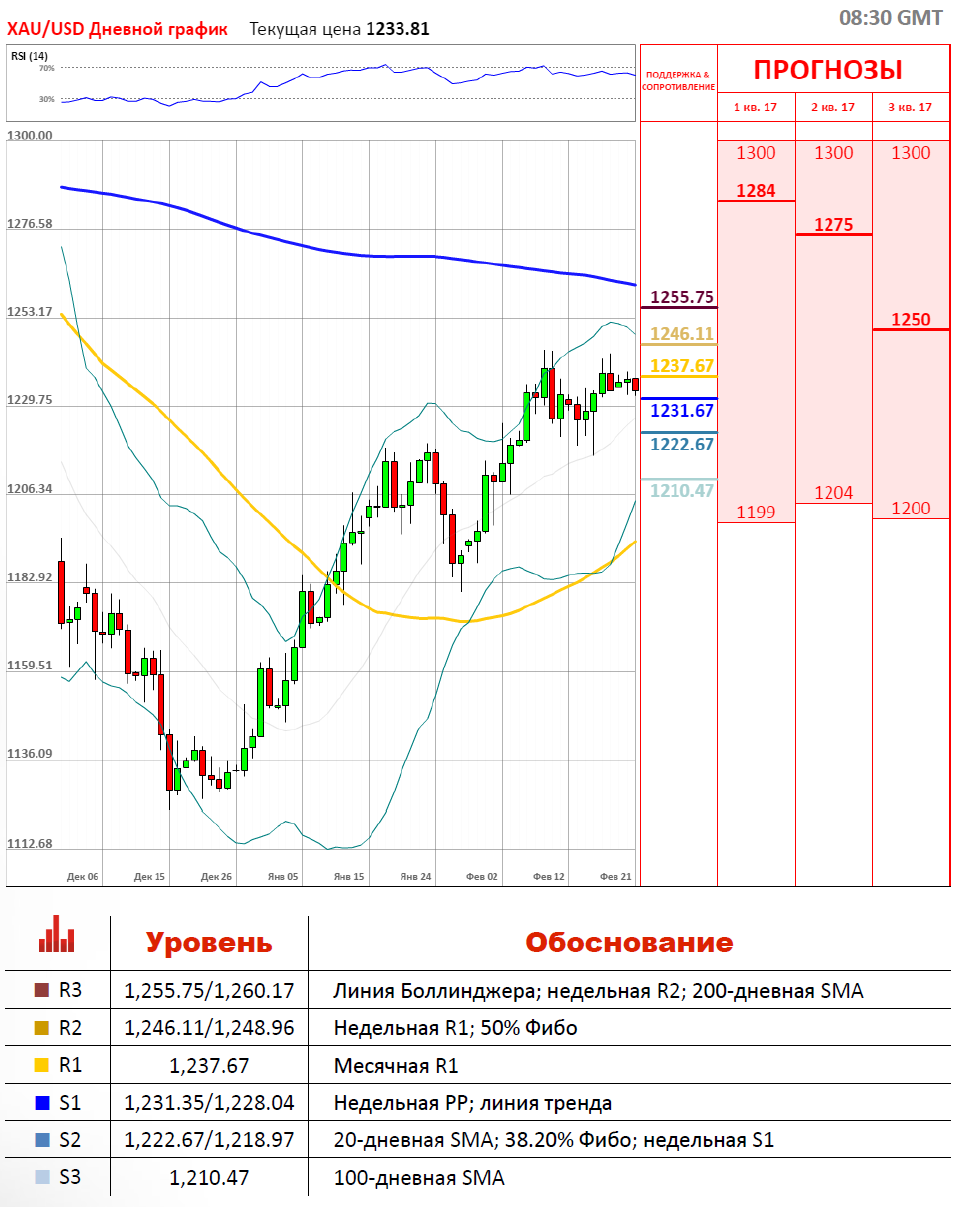 «Запасы крупнейшего в мире биржевого фонда по золоту «SPDR Gold Trust» сократились в пятницу на 2.4 тонны. На открытии вчерашних торгов это привело к первоначальному падению котировок. Курс золота протестировал на снижении уровень недельного разворота 1232$ за унцию, однако затем изменил направление и возобновил рост.».