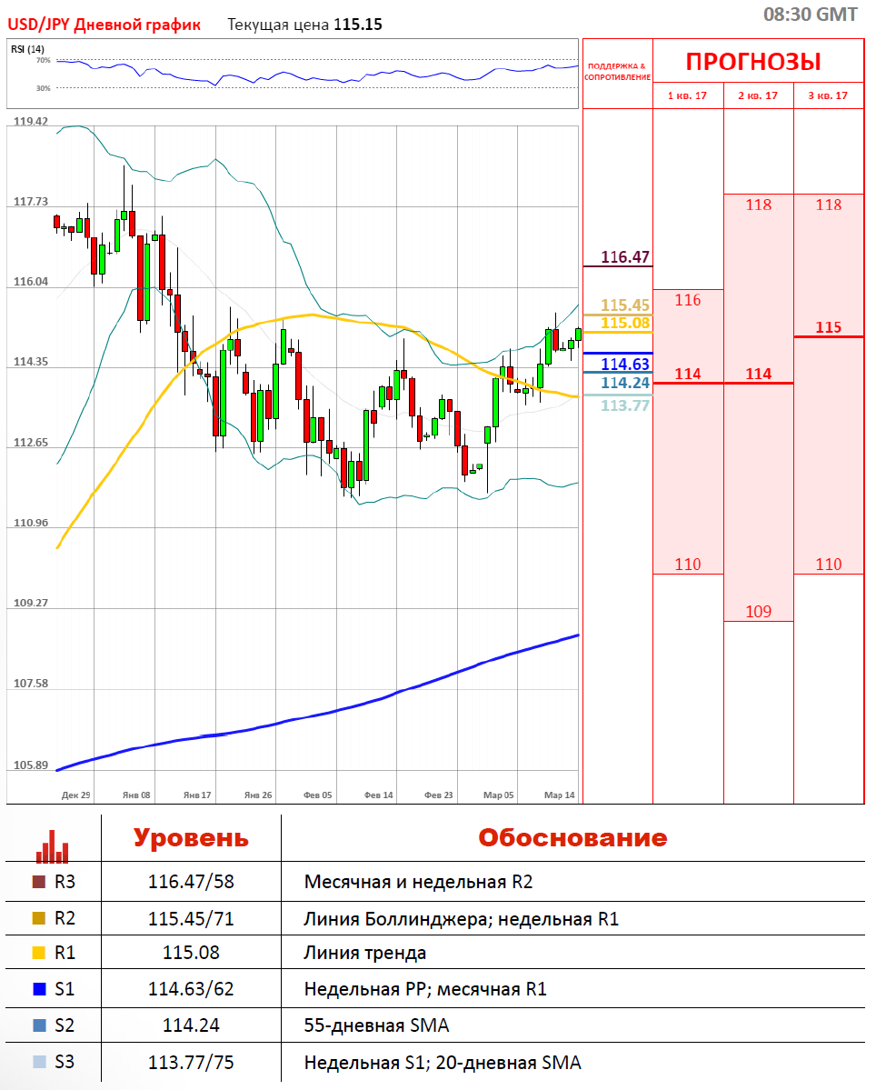 «USDJPY вернулась в область выше 115, чему помогал нейтрально-позитивный тон фондовых рынков. Ослабление иены идёт в разрез с предупреждениями экономистов, что Банк Японии уже на этой неделе может предупредить о предстоящем развороте своей мягкой денежно-кредитной политики».