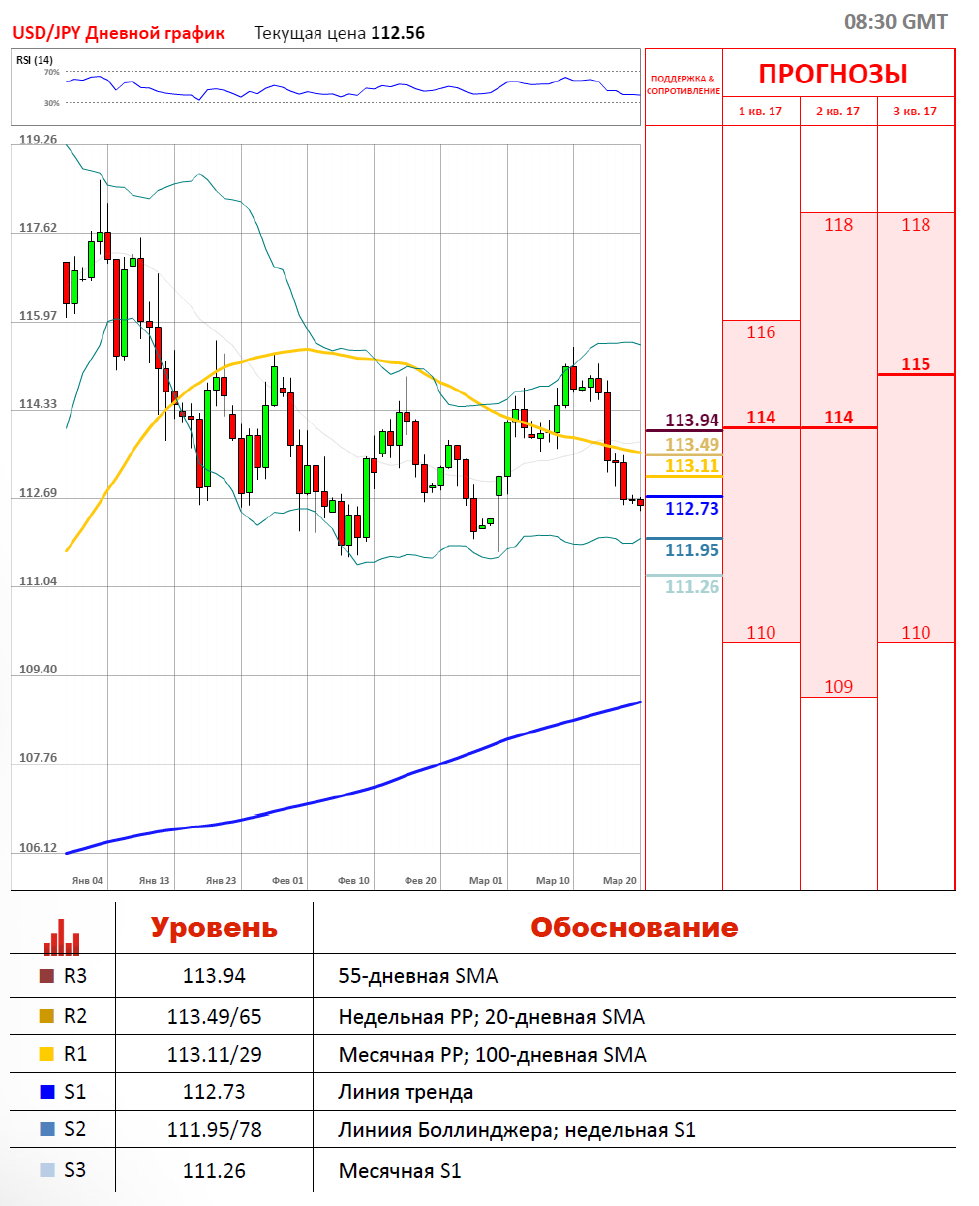 В пятницу торги по валютной паре USD/JPY проходили в красной зоне и завершились у отметки 112.71. Иена укрепилась против доллара США на 60 пунктов, а волатильность торгов по паре составила 94 пункта. На данный момент торговая сессия проходит в зелёной зоне около отметки 112.83, где локальным уровнем сопротивления для пары выступает месячная точка разворота на 113.11. Ожидаем, что валютная пара USD/JPY на этой неделе будет консолидироваться, так как выхода никаких важных экономических отчётов в США не планируется.