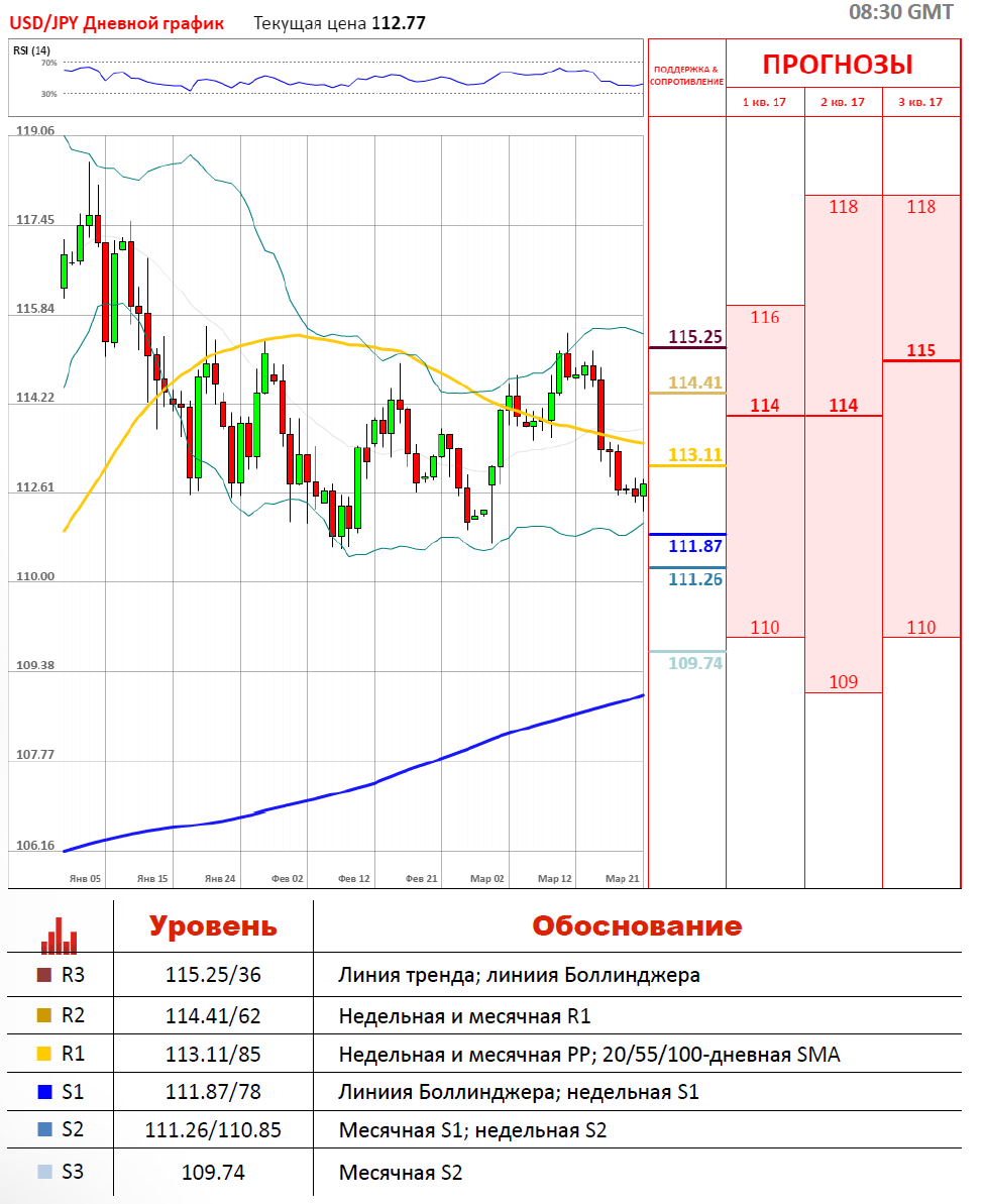 В понедельник торги по валютной паре USD/JPY проходили в красной зоне и завершились у отметки 112.56. Японская иена укрепилась против доллара США на 17 пунктов, а волатильность торгов по паре составила 44 пункта. На данный момент торговая сессия проходит в зелёной зоне около отметки 112.73, где локальным уровнем сопротивления для пары выступает месячная точка разворота на 113.11. Направление движения валютной пары USD/JPY зависит от комментариев президентов федеральных резервных банков. Если они будут настроены на повышение ставок в этом месяце, то USD/JPY будет демонстрировать рост.