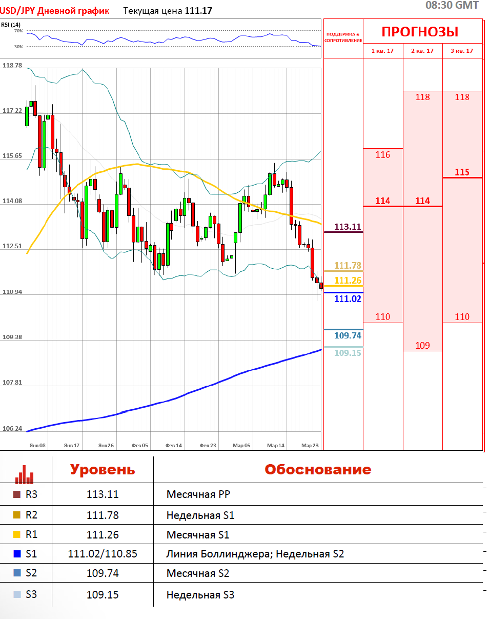 Обзор Как и ожидалось, стоимость доллара снзилась по отношению к япоснкой йене. Вчерашнюю сессию пара USD/JPY звершила ниже месячной S1, сумев удержаться выше отметки 111.00. Не смотря на то, что падение доллара по отношению к йене наблюдалось на протяжении семи торговых сессий, индикаторы указывают на то, что его позиция должна скорректироваться по ходу торгов. Однако, на момент написания материала, преобладал медвежий тренд. Более того, ближайший уровень поддержки для пары расположился на отметки близ 110.0