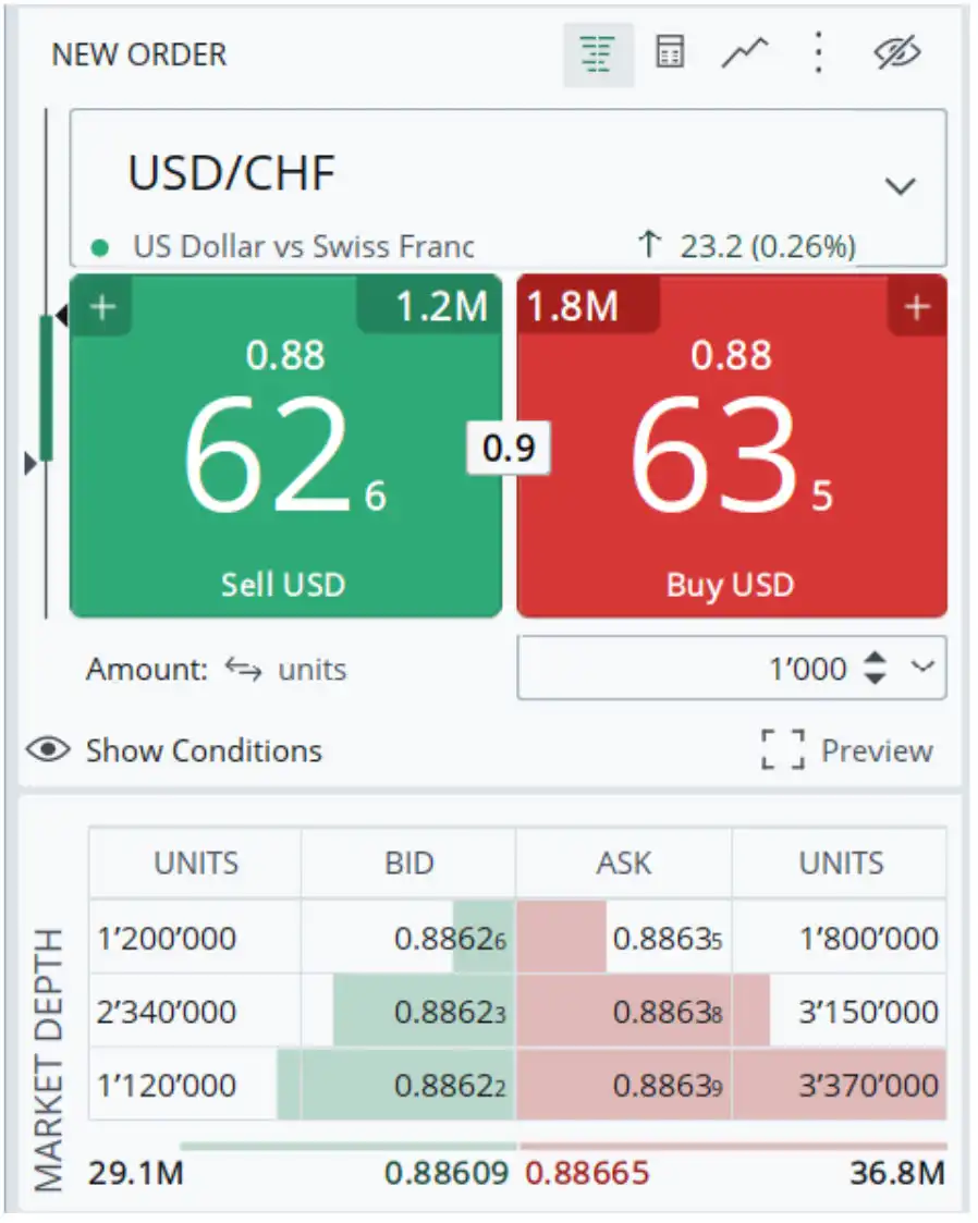 To calculate the spread: 0.88635 - 0.88626 = 0.00009
