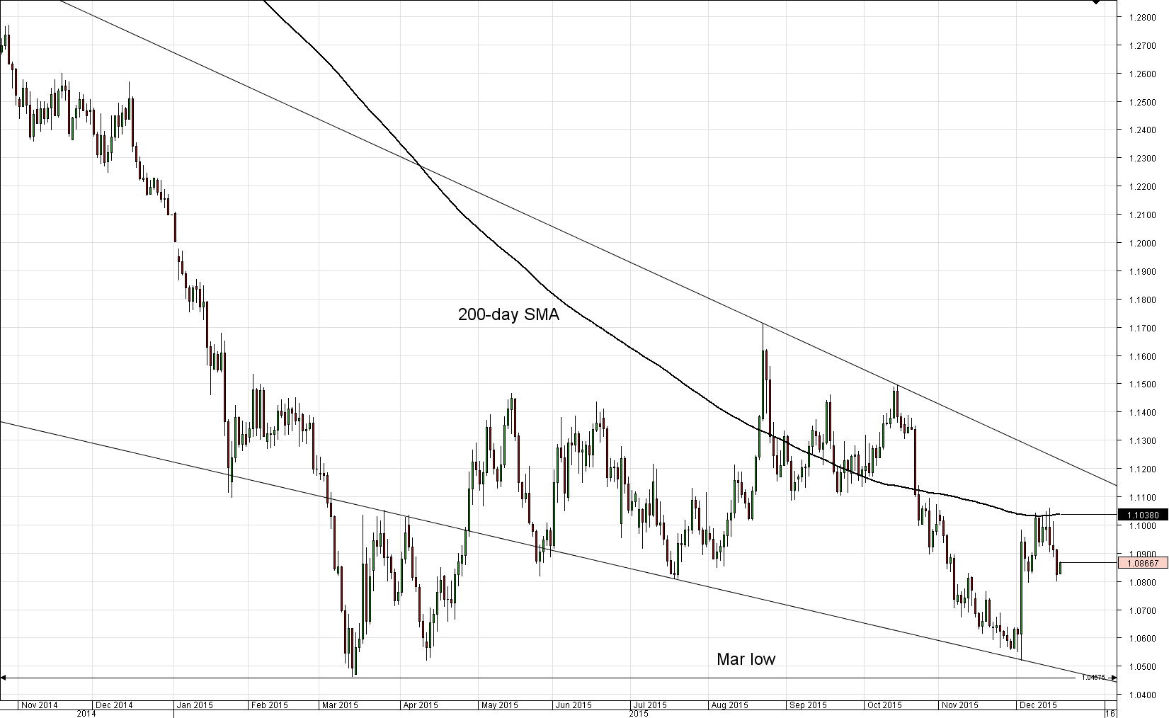 Our near-term bearish forecasts are being confirmed by the one-hour chart. The pair is forming a down-leg, which commenced back on December 15. A test of 1.08 is still expected, which is going to be broadly reinforced by 200-hour SMA. The moving average is currently reversing its recent up-trend back to the south.