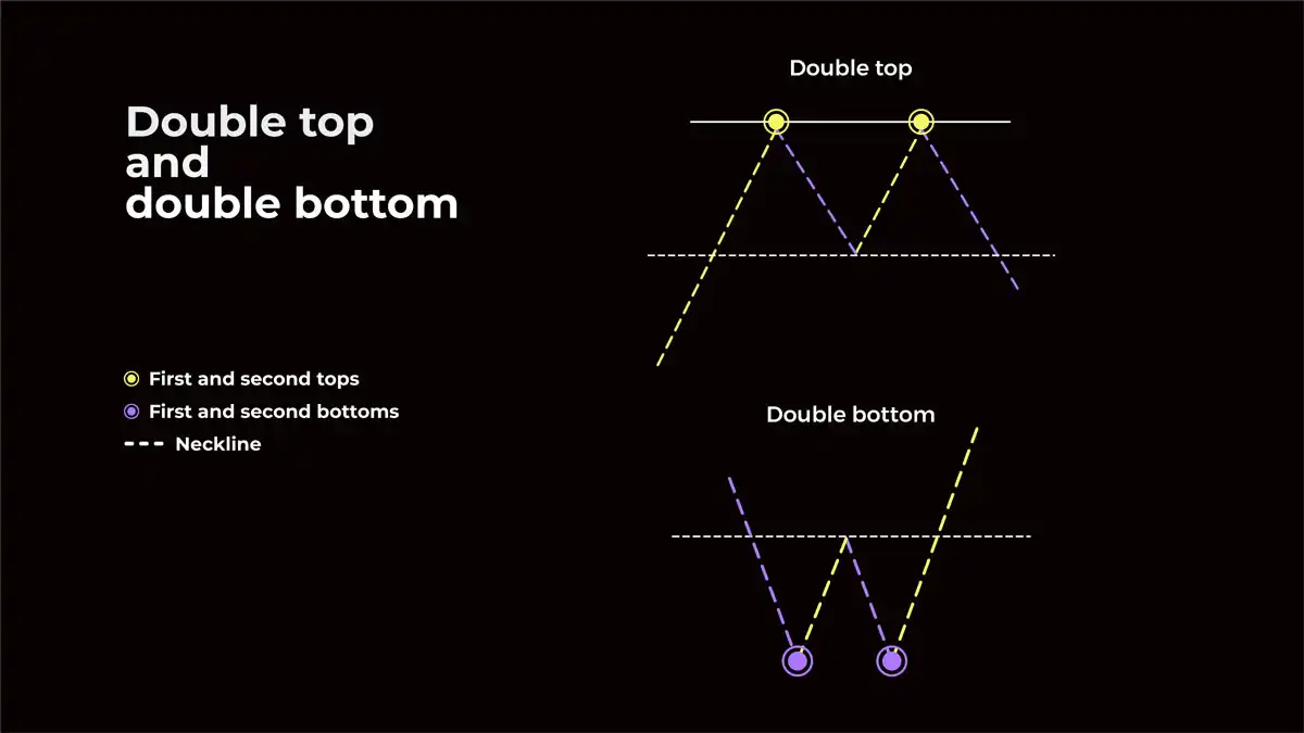 Conversely, a double bottom occurs when the price hits a low point twice, indicating a bullish reversal. It’s an opportunity to consider buying, as the market might be set to rise.