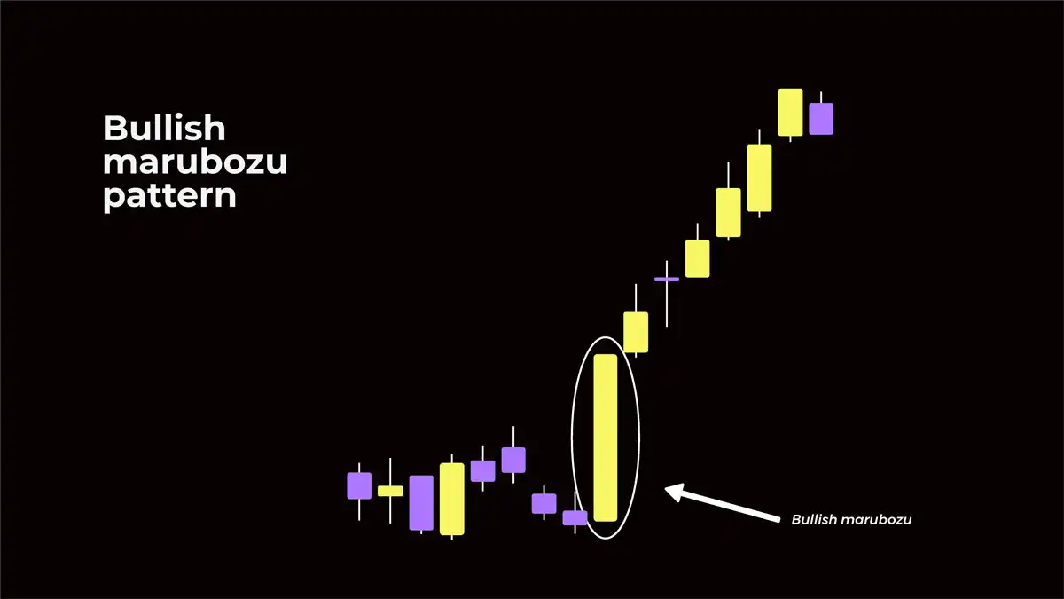 A bullish Marubozu candlestick has no shadows, only a long body, showing that buyers are fully in control from open to close. It’s a strong signal that the bullish trend will continue, making it a good time to hold or enter a new long position.