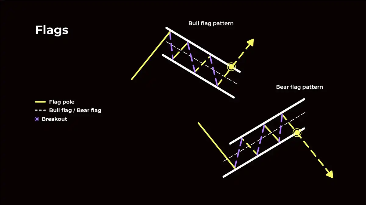 Flag patterns look like small rectangles that slope against the prevailing trend. They indicate a brief consolidation period before the trend continues. Catching the breakout from a flag can be a great way to capitalize on the trend’s next move.