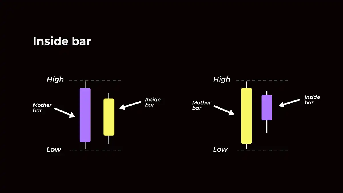 An inside bar forms when a candle's entire range falls within the range of the previous candle. This pattern suggests market consolidation and often precedes a strong breakout move. The pattern becomes more significant when found at key support/resistance levels or after strong trends.
