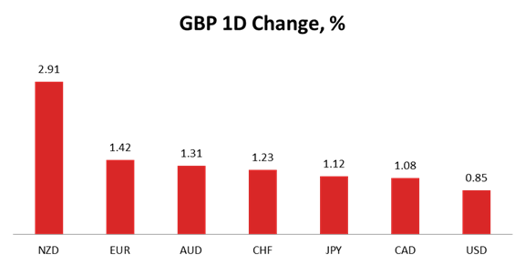 The British currency was one of the best performers yesterday, as it appreciated against most major peers. A huge rise of 2.91% was registered against the Kiwi, following with moderate gains versus the Euro (1.42%), the Aussie (1.31%), the Swissie (1.23%), the Yen (1.12%) and the Loonie (1.08%). The US Dollar was the most resilient, as it lost only 0.85% against the Sterling.