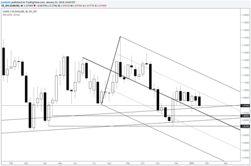 -Long term comments remain valid – “EUR/USD has been holding its long term trendline support since March 2015 (even the January low is right on the line). November and December trade produced a tweezer bottom (reversal candlestick pattern…bullish in this case) as well. 2 scenarios seem most likely from the current juncture; a continued range (with roughly 1.15 resistance) or a bullish base that leads to an eventual breakout into the 1.20s.”