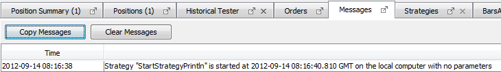 The output messages from strategy are displayed in strategy's tab.